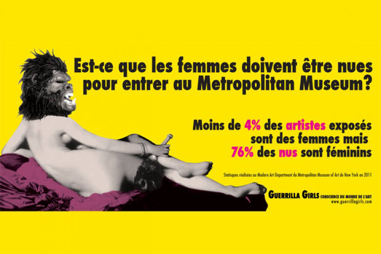 À l’unisson des artivistes réclamant un rééquilibrage du dispositif unidirectionnel de la vidéosurveillance, les artistes femmes ont dû conquérir au fil des siècles une autonomie de regard afin de se sentir sujets à part entière et non plus objets soumis au regard des hommes. Le groupe d’artistes féministes Guerrilla GirlsVoir la présentation des Guerrilla Girls sur le site du Palais de Tokyo (2013).↩︎, fondé à New York en 1985, crée et diffuse des affiches mettant notamment en question la place des femmes dans l’art. Ce collectif rappelle, sur l’une de ses affiches, que moins de quatre pour cent des artistes exposés sont des femmes alors que soixante-seize pour cent des nus accrochés sur les cimaises des musées sont fémininsVoir l’affiche Nu des Guerilla Girls (1989, 1995).↩︎. L’analyse des jeux de séduction dans les dispositifs de contrôle urbains se nourrit donc sans surprise de démarches d’artistes féminines désirant créer un double jeu de séduction vis-à-vis du regard numérique de la vidéosurveillance.