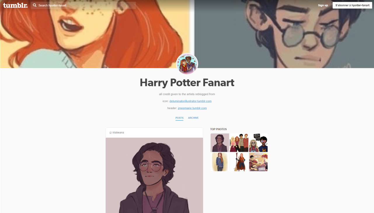 Page d’accueil du tumblr. Harry Potter Fanart