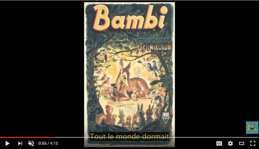 Les affiches sont associées à une bande sonore qui se révèle le fil d’Ariane du savant découpage : les affiches à peine modifiées de BambiVoir l’affiche de Bambi telle qu’utilisée dans l’épisode.↩︎ (1942), Ex DrummerVoir l’affiche de Ex Drummer telle qu’utilisée dans l’épisode.↩︎ (2007), The GooniesVoir l’affiche de The Goonies telle qu’utilisée dans l’épisode.↩︎ (1985) ou BrazilVoir l’affiche de Brazil telle qu’utilisée dans l’épisode.↩︎ (1985) s’animent progressivement, en phase avec l’action créée. Ces animations préservent l’essentiel des affiches et se limitent à faire bouger lèvres, les regards ou les poses des personnages. Par exemple, l’affiche coréenne de Dirty DancingVoir l’affiche de Dirty Dancing telle qu’utilisée dans l’épisode.↩︎ (1987) montre le couple de danseurs enlacés, sauf que la main du personnage masculin passe de la taille au sein droit de sa partenaire. L’intrigue du conte s’établit alors que s’anime l’affiche du film Les enfants du paradis (1945) pendant que la bande-son compose un dialogue original mettant en vedette Batman, incarné par le mime Deburau. Ainsi, ce mime travesti sur le plan sonore entame un dialogue avec les deux autres personnages de l’affiche qui, eux, prennent à témoin les personnages d’affiches d’autres films, comme s’il existait une communauté d’affiches cinématographiques accrochées quelque part, en relation entre elles. Quand il reconnaît Batman, Lemaître s’exclame dans un anglais à l’accent français « Hé les mecs ! Regardez comment Batman s’habille sous son costume » (sous-titres français de la capsule).